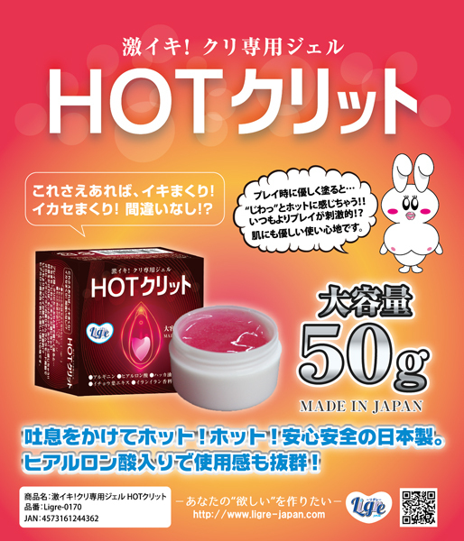血行を促す成分や爽快感のあるハッカ油ほか、潤い成分のヒアルロン酸を配合で使用感も抜群!ホットな快感が全身を駆け巡る♪官能的なイランイランの香りで更に興奮度アップ!たっぷり使える大容量50gサイズの女性向けエッチコスメです。