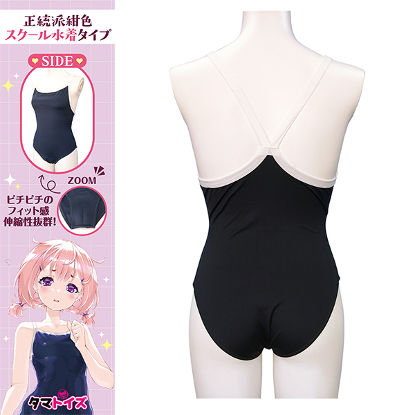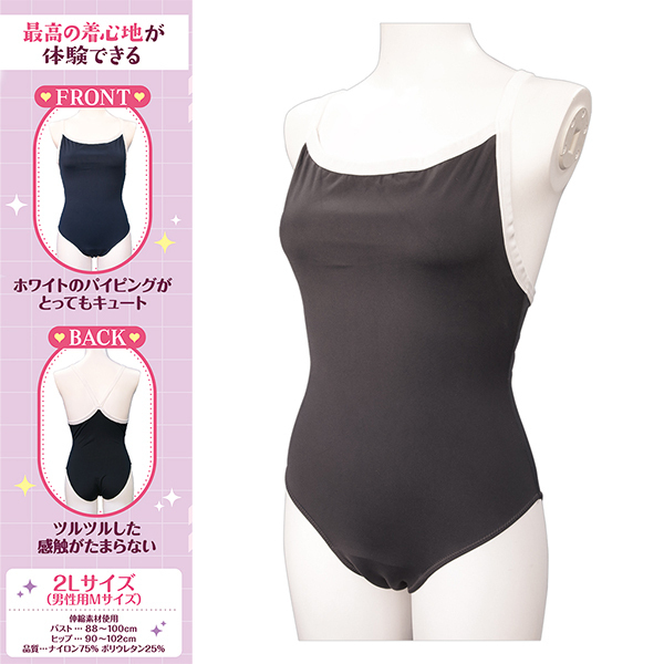 かわいらしさと清潔感を兼ね備えた紺色スクール水着です!フィット感のある生地がしっかりと体に寄り添い自然なシルエットを演出します♪ホワイトのパイピングがアクセントになりスポーティーかつキュートな印象をプラス!伸縮性のある素材で動きやすく快適な着心地を実現♪男性用Mサイズ相当の2Lサイズ設計でおとこの娘にもぴったりフィット!バスト88〜100cm・ヒップ90〜102cmに対応しています♪ワレメ風の立体カップ構造により♪衣装としての完成度を高めています!コスチュームやパフォーマンス用としてもおすすめです♪