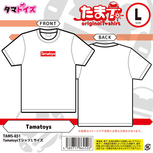 胸元に「Tamatoys」とテキストロゴが入ったタマトイズ公式グッズ「たまT」。