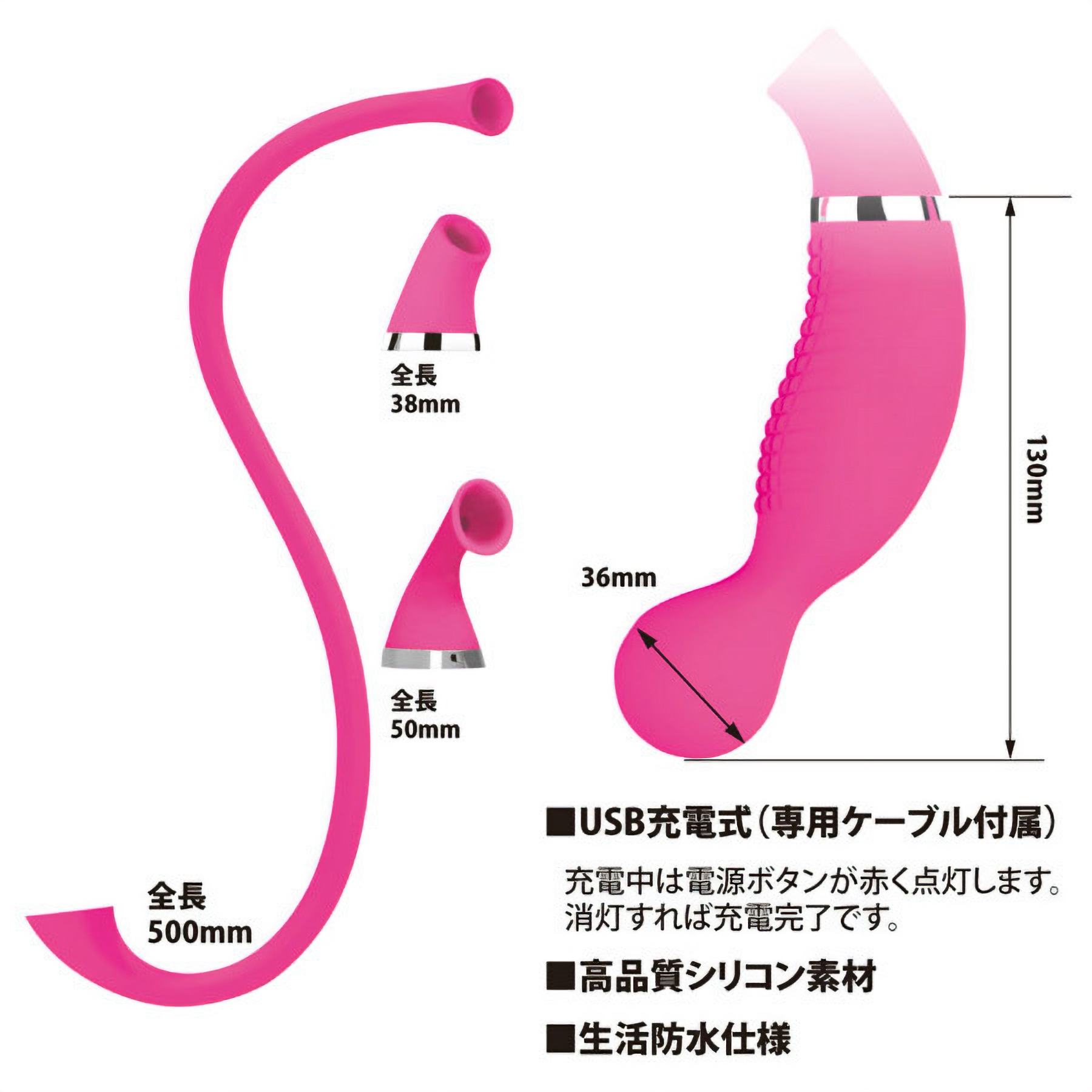 吸引+振動の衝撃快感!責めポイントに合わせて使い分け可能な3種のアタッチメント付き吸引ローター。●肌触りの良い高品質シリコン●12パターンの吸引&振動搭載●吸引アタッチメント3個付属●アタッチメント小:全長3.8cm●アタッチメント中:全長5cm●アタッチメント大:全長50cm●吸引口と逆側にモーター内蔵●ぷっくり丸い先端は挿入も可●生活防水仕様(水没は不可)。まるで唇で吸われるような吸引力!あらゆるポイント責めができる吸引系ローター。クリトリスから乳首まで用途別に使い分けて極上バキュームをご堪能ください。