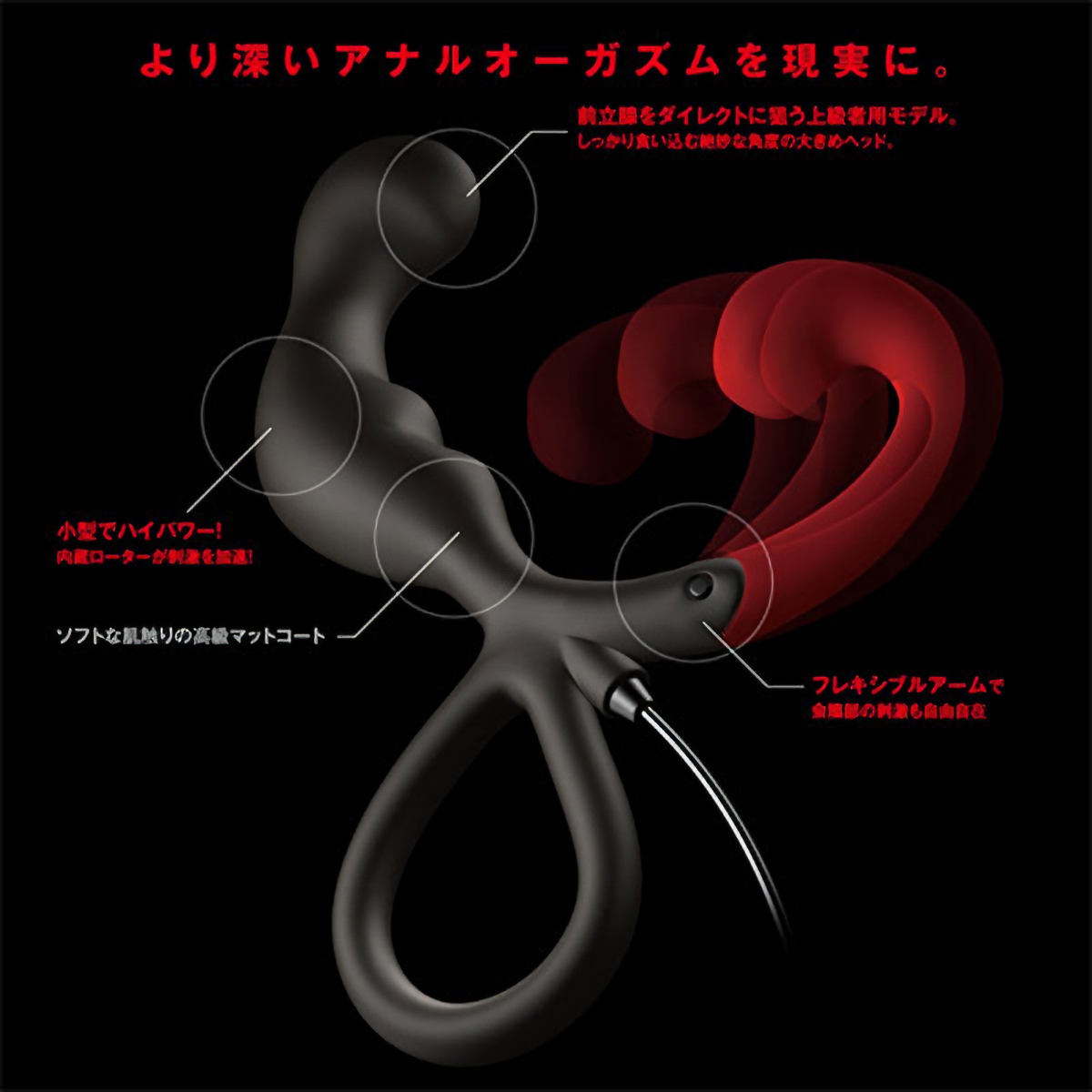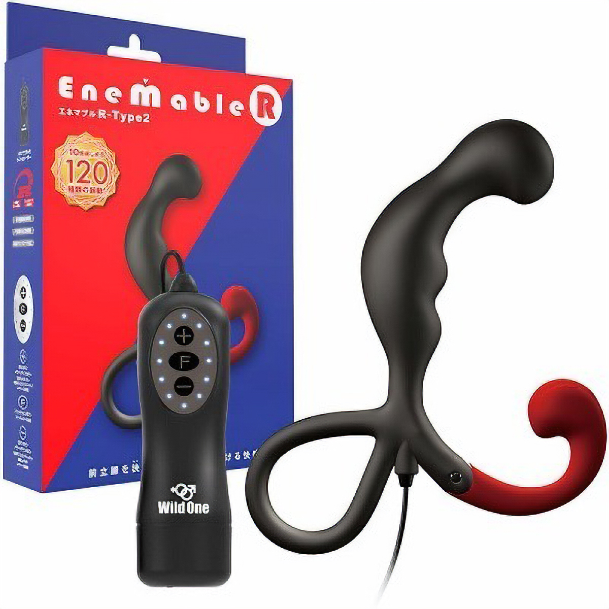 あの前立腺開発グッズ「エネマブル」がグレードアップ♪脳天まで突きぬける120種の快感振動を深い部分で味わえる電動エネマグラ「ENEMABLE R Type-2」。サラッとした肌触りで高級感あふれるマットコート仕様の前立腺刺激グッズが全120種類の振動を可能にした新モデルのIC機能付きコントローラーで登場!微弱から激震への12段階スピードに加え、多彩な10種類の振動パターン変化機能を搭載しています。会陰部を刺激するフックには3段階調整可能な可動式アームを採用し、確実に会陰部を刺激します。超低速からターボモードまで飽きのこない多彩な振動を搭載した深化系アナルグッズ!しっかりと食い込んでダイレクトに前立腺を刺激する中~上級者向けの『Type2』は絶妙な角度の大きめヘッドが特徴です。単四電池×2本付属。