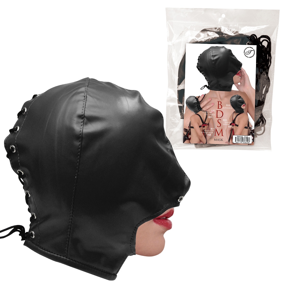 柔らかな質感のフェイクレザー製マウスオープンボンデージマスクインナーはフェルト加工で肌に優しい仕様。カラー:ブラック