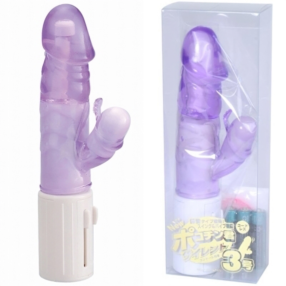アメジストのように透明感のあるパープルカラーが綺麗なリアル形状の電池式バイブ。ゼリーのようなプルプル柔らかい質感とカリ太ヘッドが特徴的♪スイングと振動やクリバイブなど3つの刺激的機能を搭載した、リモコン一体型のコードレスバイブです。単4電池を3本使用