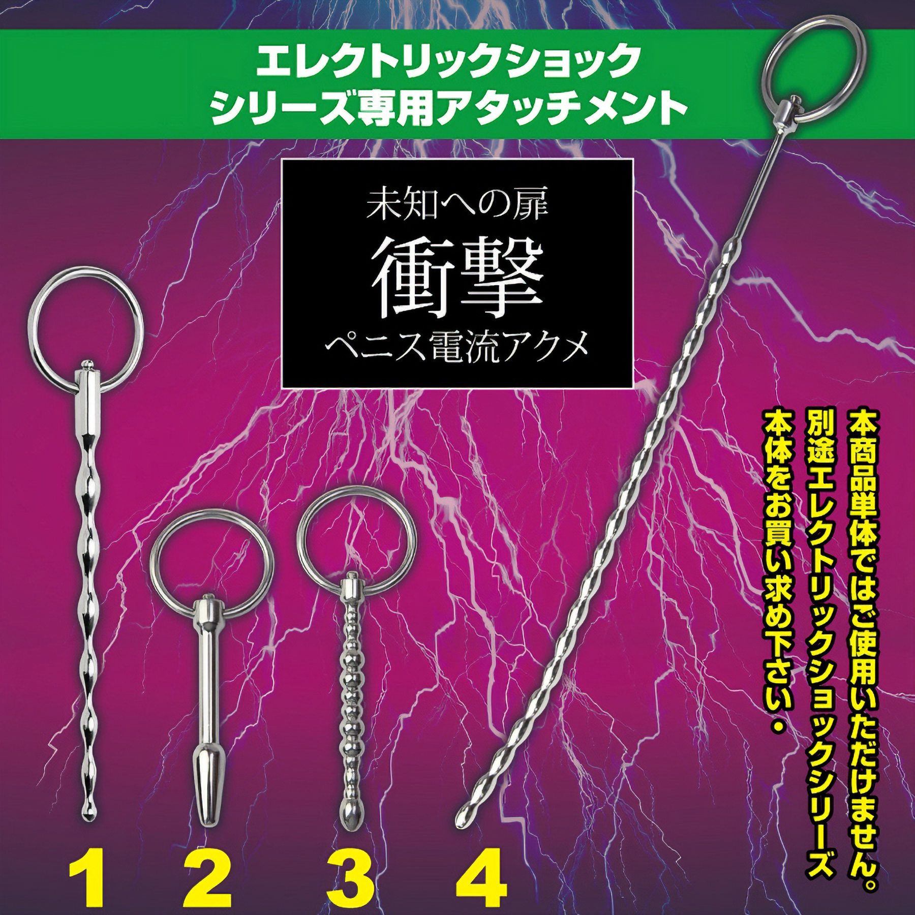 ペニスに走る衝撃!低周波パルスグッズ「エレクトリックショック」シリーズから、金属製の専用ブジーアタッチメント。重厚なメタル製の細身ボディからビリビリと痺れるような電気が流れる!電撃による快感が未知への扉を開くエレクトロ系グッズ。別売り本体「コックループ&ブジー(b29208)」と組み合わせてお使いください◎サイズは挿入部13.3cm×0.5~0.7cm仕様