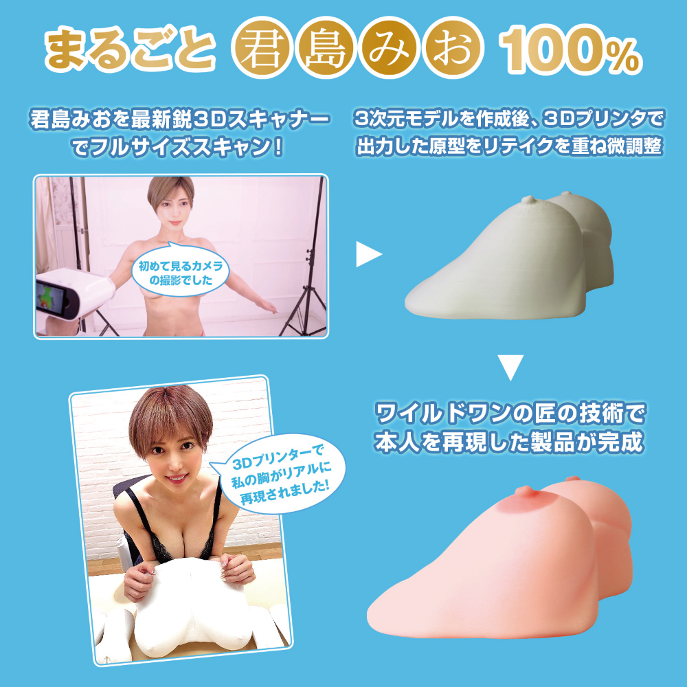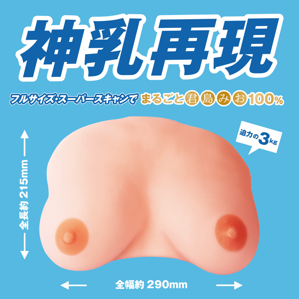 あの君島みおちゃんのスーパー美乳を鷲掴みできる!彼女のおっぱいをリアル採寸で3Dスキャンし、本人監修で揉み心地を極めた超リアルなオッパイです♪憧れの君島みおちゃんの美乳がフォルムやサイズ感、柔らかさ、肌の色合いに乳輪サイズまで、あらゆる部分を徹底的に忠実再現!君島みお完全プロデュースによるフル3Dスキャンでの本ナマ具現化♪一切の妥協をすることなく試作を重ねた成果、遂にここまでリアルな女神の現し身が完成しました!至高のオッパイは4層構造。手の平に吸い付くような素材感に乳首のコリコリ感、もみ心地やむにゅむにゅ感もリアルに再現されています♪AVとシンクロしての胸射プレイやパイズリをたっぷりとお楽しみください!