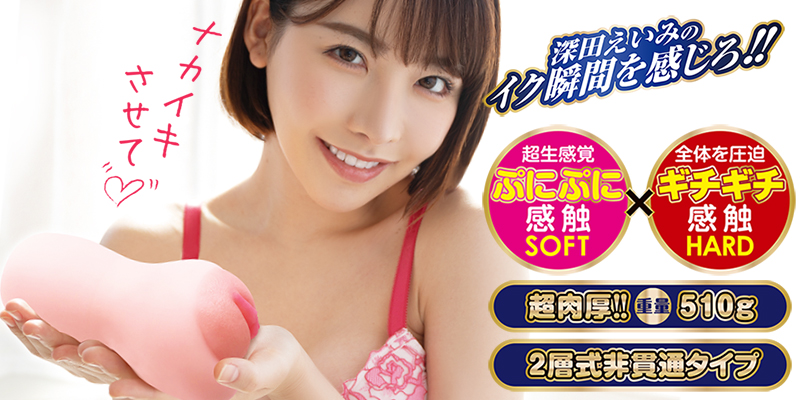 ボリューミーなFカップ爆乳&小悪魔な顔立ちで世の男性を魅了する元アイドルAV女優「深田えいみ」さん監修!イク手前のギュッと締まる膣内を忠実再現した非貫通オナホ。リアルな生感覚の柔らか素材と圧迫刺激する硬質素材の2層で仕立てた510gの超肉厚ボディ♪プチプチ感が心地良い数の子天井やカリを咥え込む縦ヒダその他複数のギミックを設置。オリジナルボトルローション付