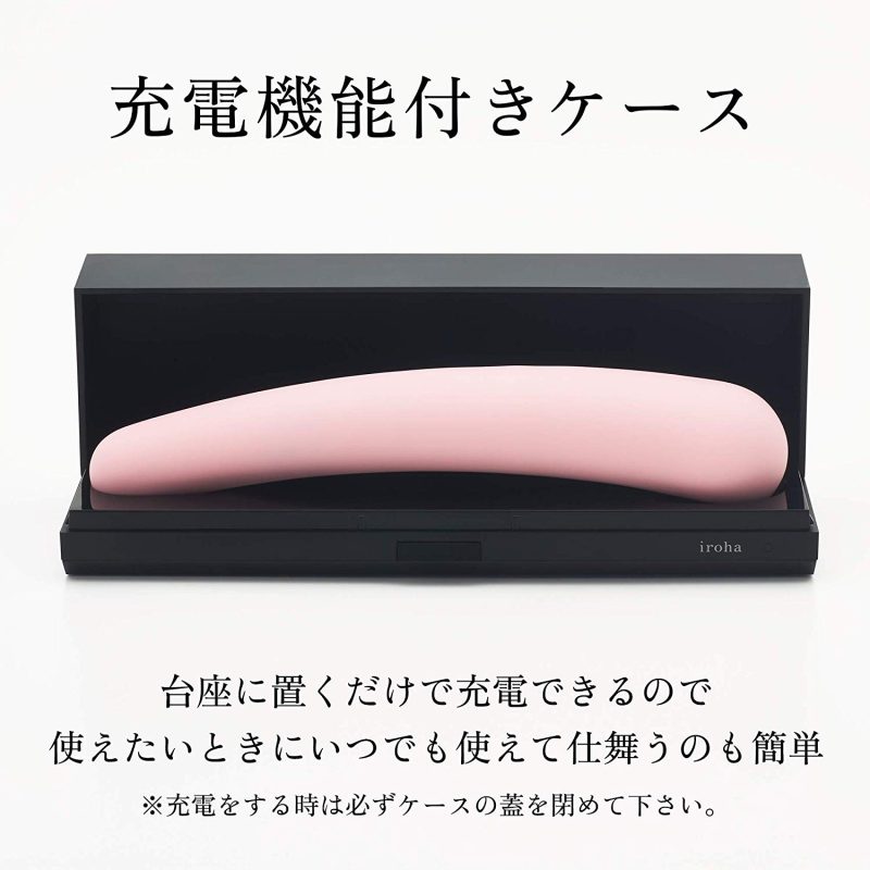 通常のものと比べて細くiroha特有のモチっとした柔らかな質感が、初めてでも挿入しやすいと好評♪身体にフィットする構造で気持ちの良い部分をしっかり刺激してくれる!人肌恋しい夜のお供に是非♪お風呂でも楽しめる防水設計、充電機能付きケース付属