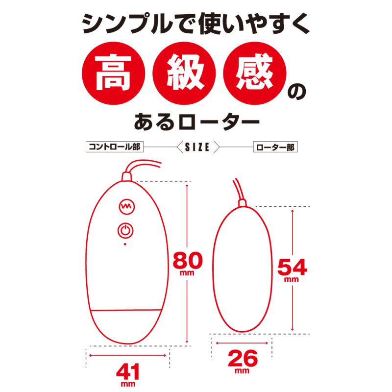 | 仕様 | パッケージ:16.5×9.0×5.0cm 本体:ローター5.4×2.6cm 重量:43g 電池:単四電池×2本使用 |