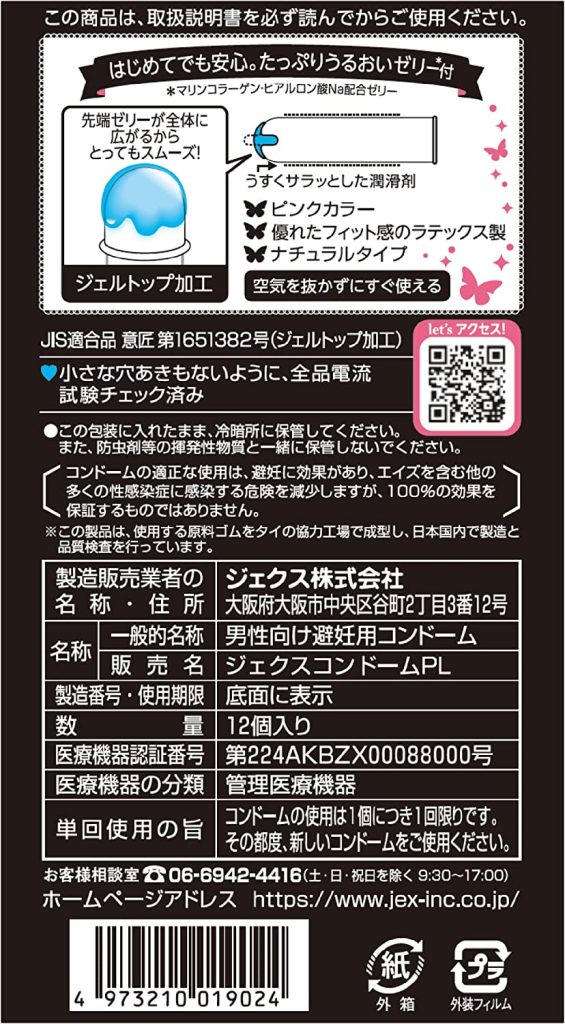 先端にマリンコラーゲン、ヒアルロン酸配合の潤いゼリー付き!流行に敏感なティーン世代の女の子達が「女性たち自身が欲しくなるコンドーム」をコンセプトに作ったお洒落コンドーム「グラマラスバタフライモイスト1000」12個入。デザインだけじゃなく、あれもこれも欲しい女性ならではの悩みに応えた潤いタイプのコンドームです。