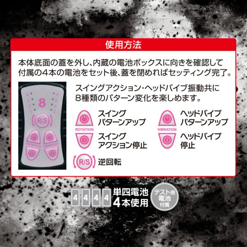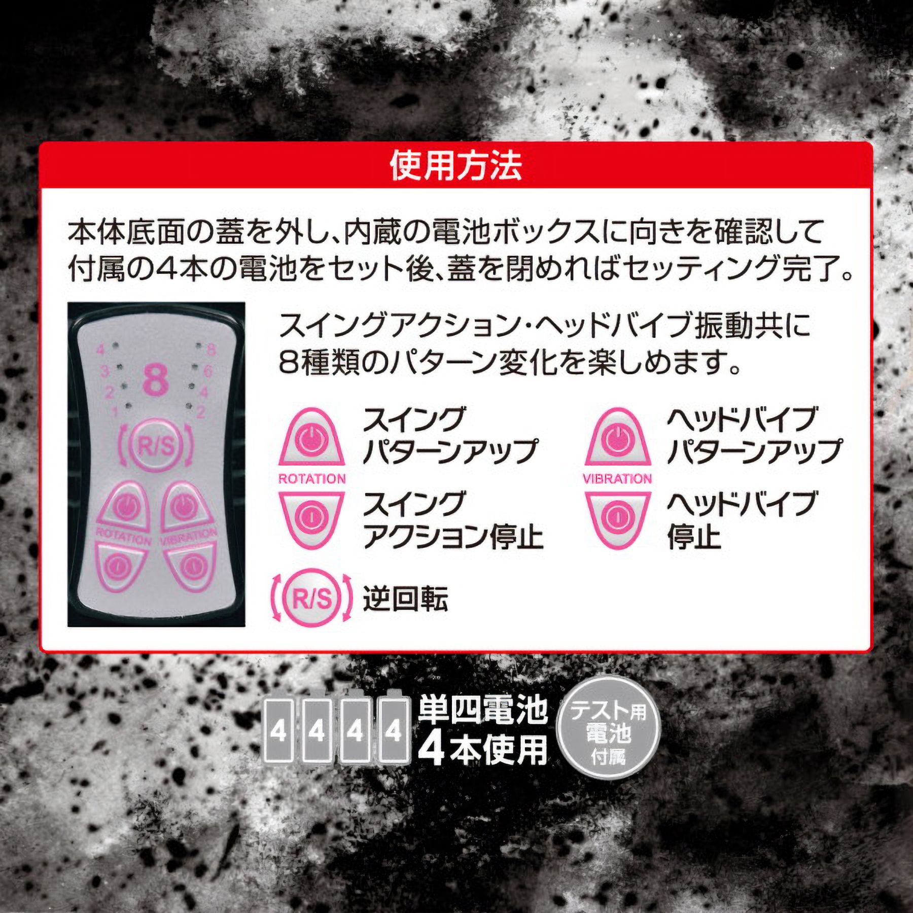 中イキ好きに!6Vの激震でGスポを責め立てる高性能モーター内蔵の電池式バイブ(黒)。8種類の振動&スイングと刺激の変化をもたらすリバース機能など多彩なアクション搭載!挿入可能長153mmのストレートボディが内部をかき回し、ヘッドバイブでGスポを徹底的に刺激する♪止まらぬ快感に病みつきになること間違いなし!滑らかで柔らかな特殊ラバー素材使用。単4電池×4本使用