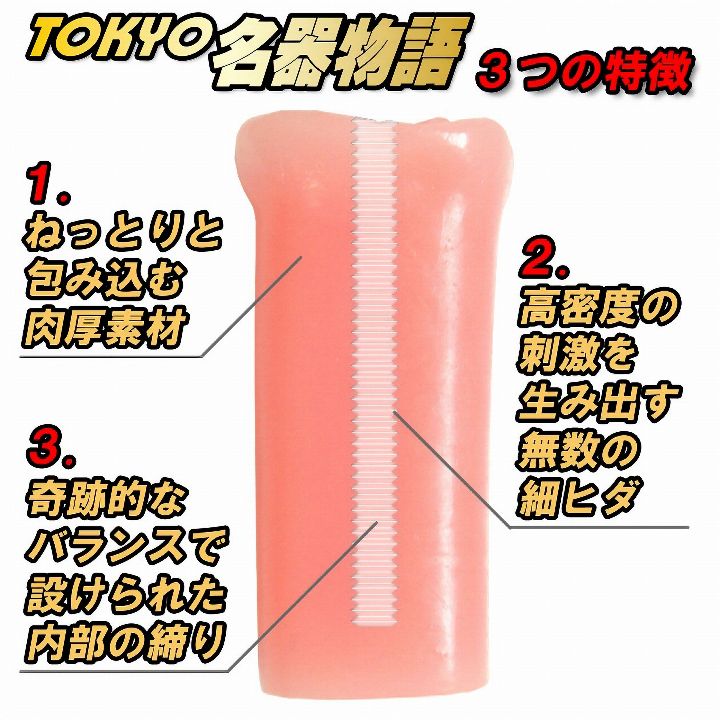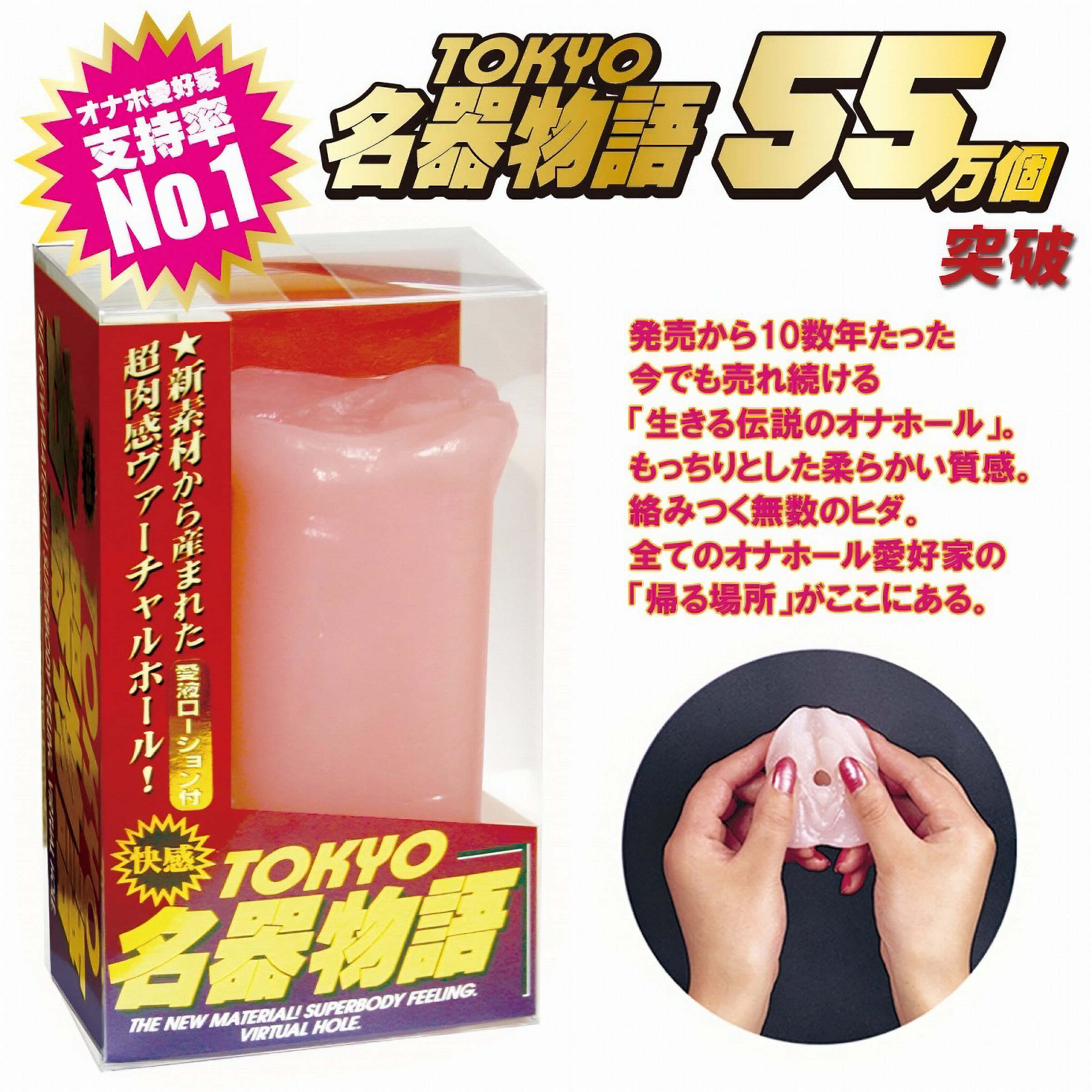 東京名器物語は知る人ぞ知る究極のオナホール。肉厚な非貫通型ホールは最高の吸着力と柔軟性を備えています。ローションをたっぷり使用し、ホール胴体を真空状態にして吸い込むように挿入すると、まったりとしたミミズヒダが、ペニスにまとわりつきます。使用感を例えるなら憂いのある人妻と言った所でしょうか?まさに本物より気持ちいい最高のオナホールです。